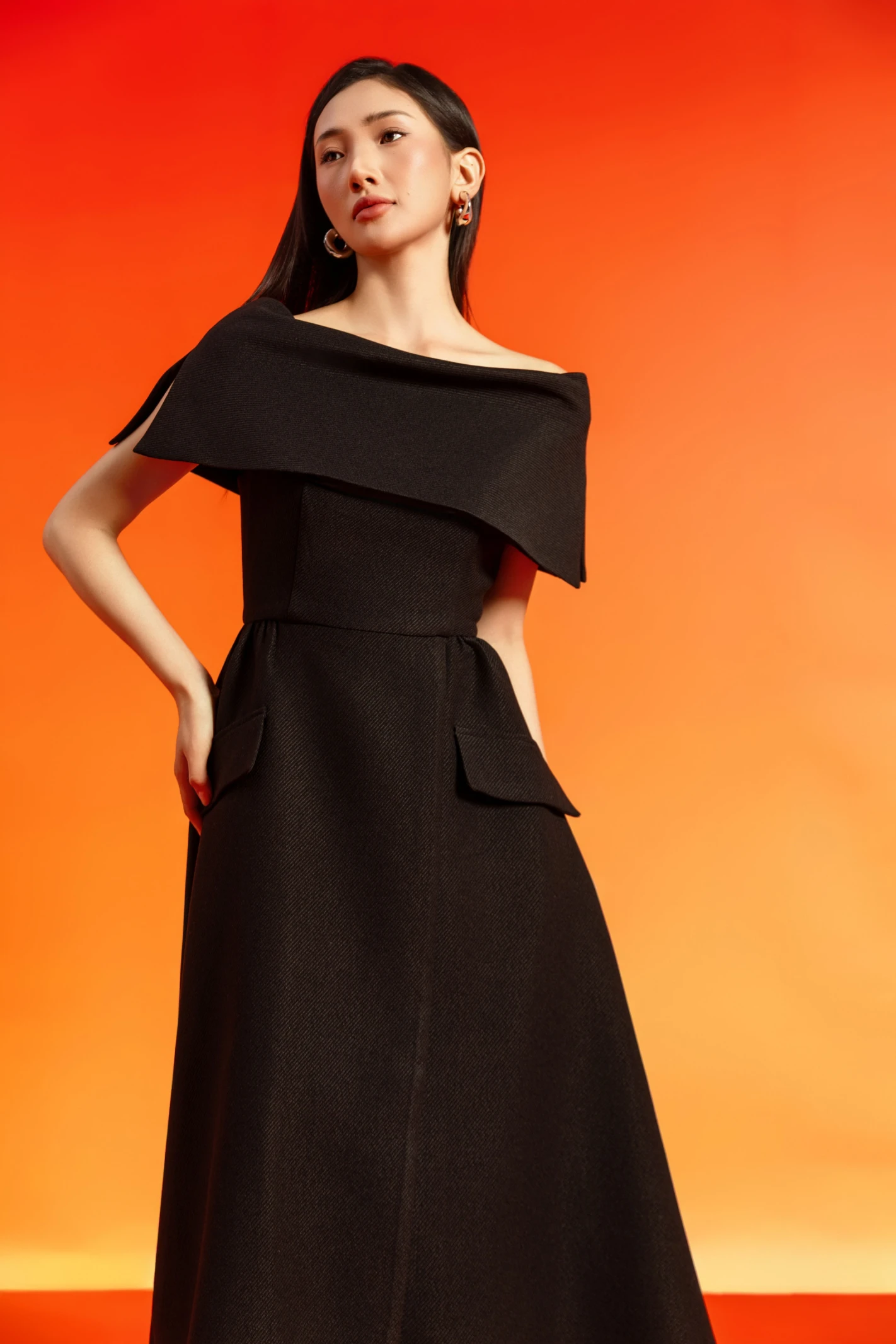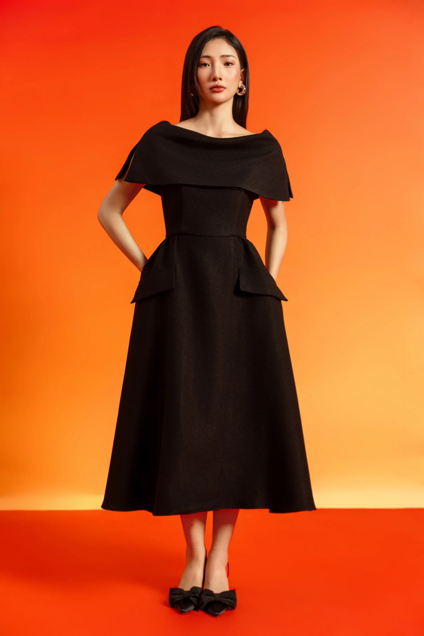 Black Woven Flared Dress