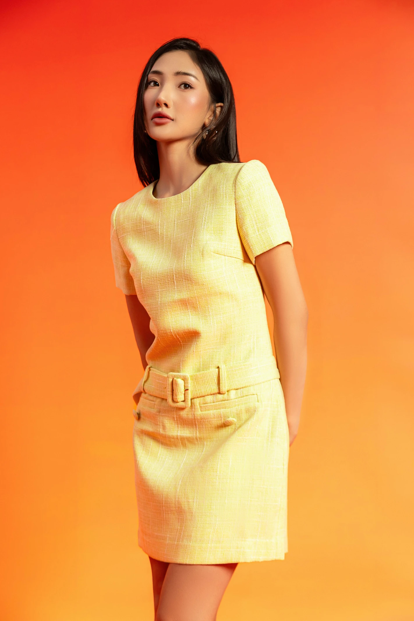 Light Yellow Tweed Mini Dress