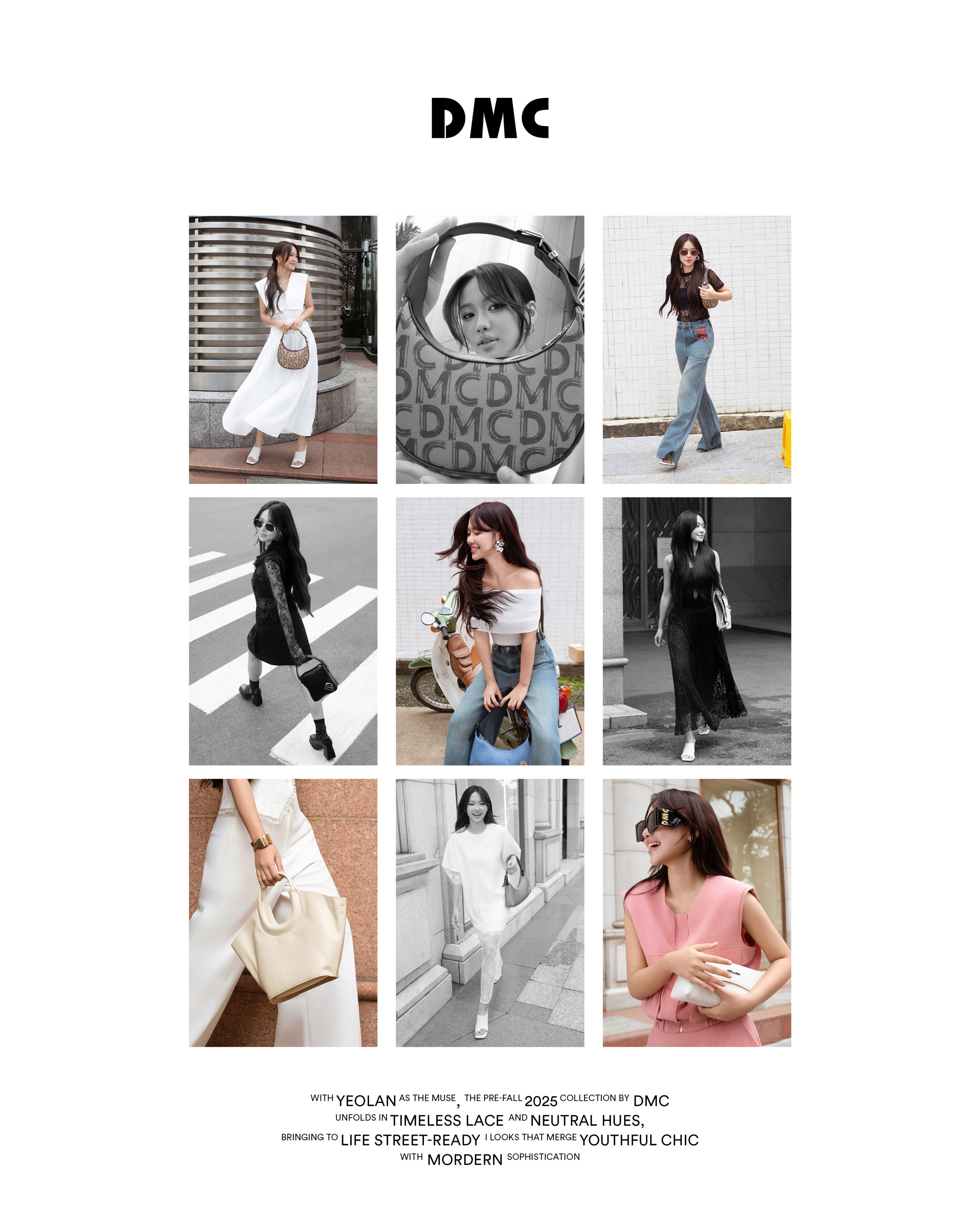 Sự kết hợp đặc biệt giữa DMC và em xinh Yeolan mang đến nguồn năng lượng hoàn toàn tươi mới: trẻ trung, phóng khoáng và đầy quyến rũ. BST lần này khai thác đa dạng chất liệu, với ren là điểm nhấn, kết hợp có thêm lụa mềm mại, dệt thoi thanh lịch hay tuytsi phá cách, cùng các phom dáng đa dạng, từ đầm xoè bay bổng, set vest hiện đại đến những thiết kế cut-out năng động.