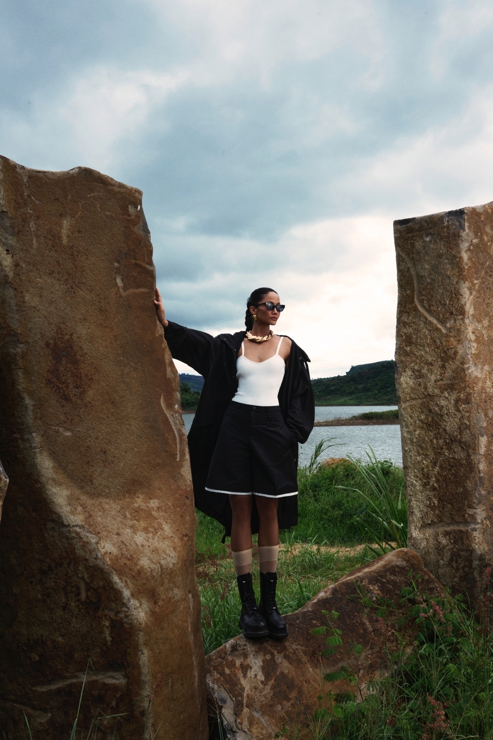 Ở Di Linh, người đẹp kết hợp áo ôm, quần shorts bermuda - xu hướng hot hai năm nay - cùng bốt biker.