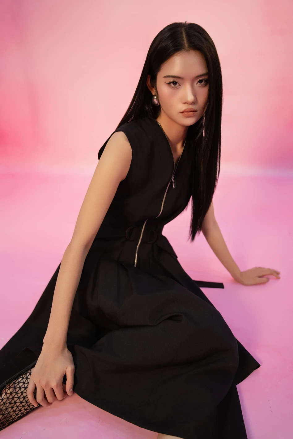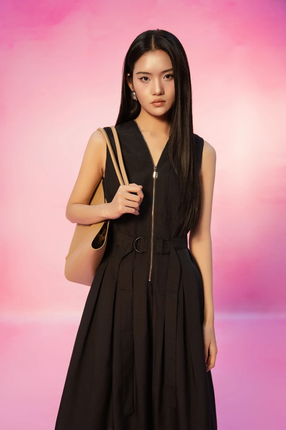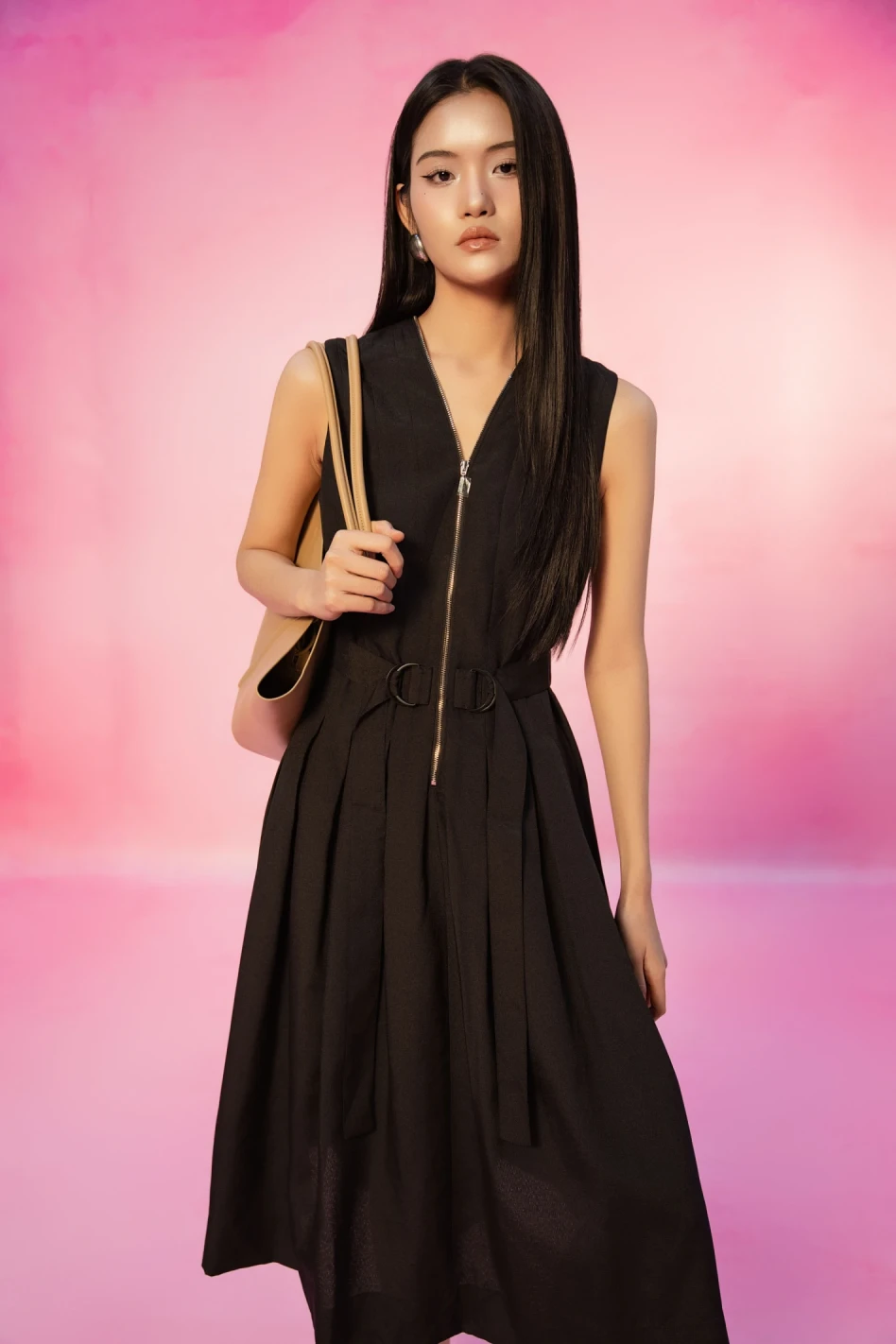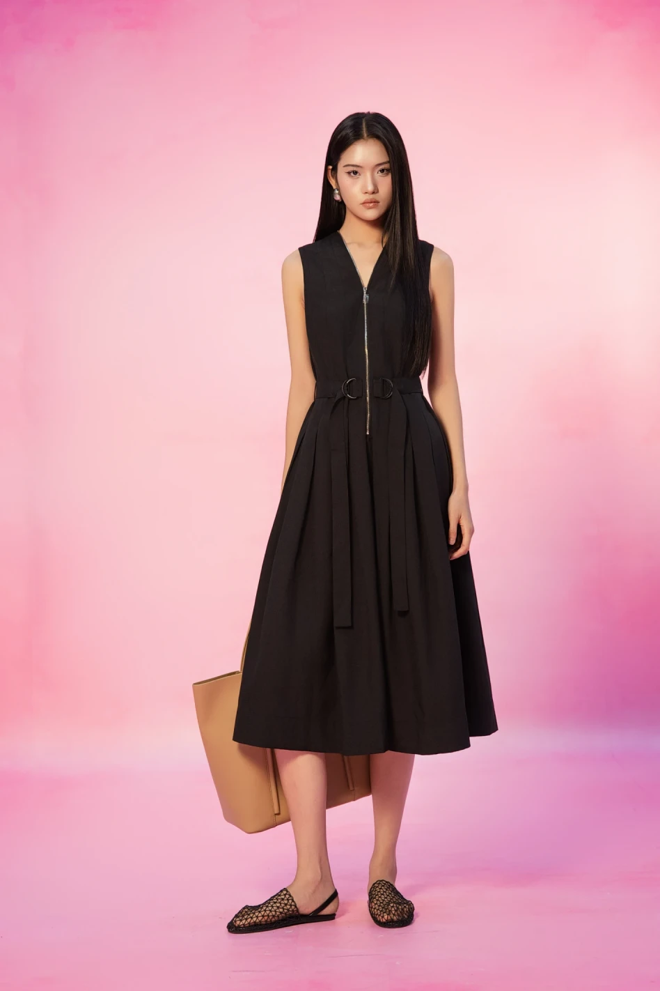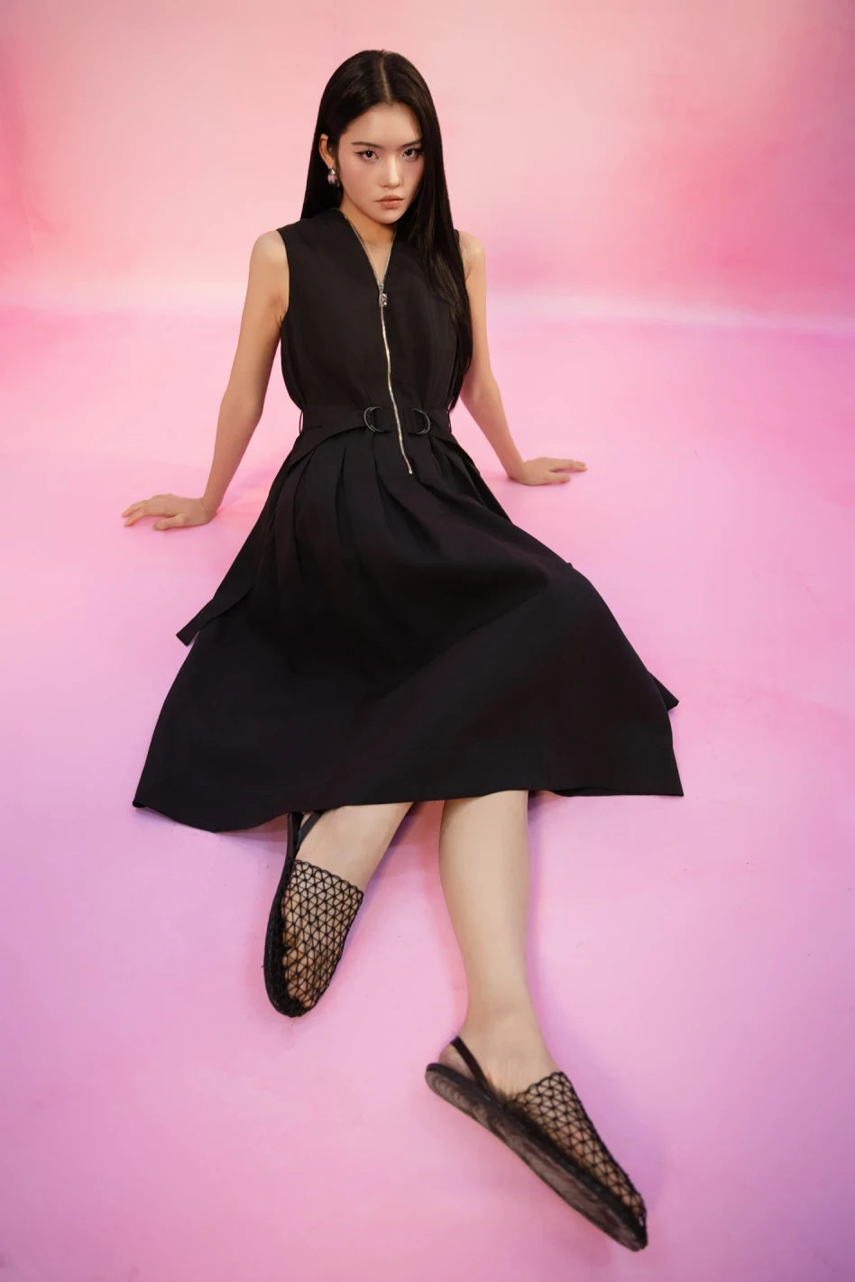 Black Sleeveless Woven Flared Dress
